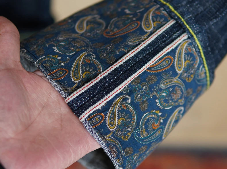 Thank you so much for appreciating our fabric — we’re glad you enjoy the unique slubby texture and indigo shade. Regarding sizing, our size chart is based on actual garment measurements, while some other brands tend to run larger, which may cause the difference you noticed. For customers who prefer a looser fit, we recommend choosing one size up.